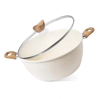 ROBUST CORE DESIGN: Built for durability and consistent performance, this stockpot by Nuovva features a solid core that heats quickly and evenly. It handles high-volume cooking with ease while resisting warping and wear. A dependable choice for everyday meals or big-batch cooking! TIMELESS CREAM EXTERIOR: The smooth cream-colored finish brings a calm, neutral elegance to your kitchen. Its subtle tone pairs beautifully with modern, farmhouse, or traditional decor styles. More than just stylish, the finish is scratch-resistant and designed to maintain its splendour over time! SMOOTH NON-STICK INTERIOR: Cooking and cleanup are hassle-free thanks to the PFOA-free non-stick interior coating of our premium stockpot. Foods glide out of the pot effortlessly with no sticking, scraping, or soaking required. Ideal for everything from hearty soups to delicate sauces! DEEP CAPACITY: This pot’s generous 32cm depth offers ample room for boiling, braising, and slow cooking without crowding ingredients. Great for family dinners, meal prep, or hosting, the tall walls help reduce mess and spatter. It’s your go-to when cooking large portions with ease! STOVETOP VERSATILITY: Safe for use on all stovetops—including induction, the cream stockpot by Nuovva includes a vented glass lid which allows you to check progress while locking in heat and moisture!, Weight: 7.3413933246 Pounds, Manufacturer: Nuovva
