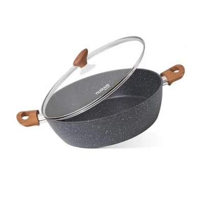 Non Stick Cooking Pots with Glass Lid Induction Hob Stock Pot Kitchen Shallow Casserole Cookware 30cm, Marble by Nuovva