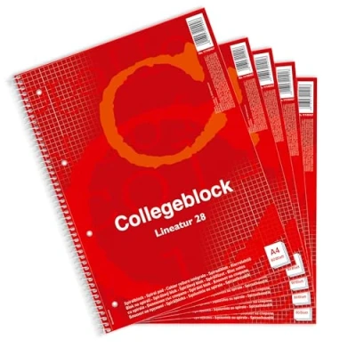 AmazonSpiral notebook in A4 format, squared Wood-free white paper, 60 g/m² Line style 28 (squared with margin inside and outside) With round spiral, 4 holes and micro-perforation Number of sheets: 80 sheets