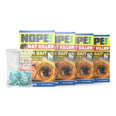 NOPE! Rat Killer Grain Bait 4 x 150g Super Strength Poison Sachets Single Feed Premium Oat Quick Acting Rodent Control and Mouse Works Outdoors in All Weather