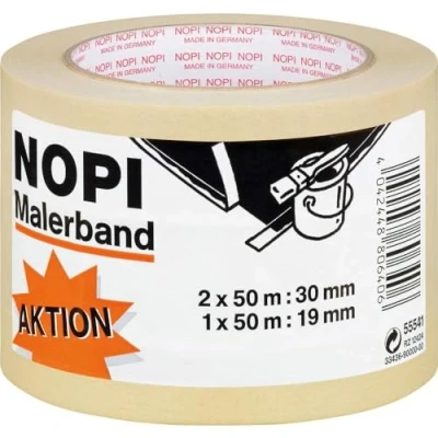 Good adhesive properties on almost all surfaces 2x 50m:30mm ; 1x 50m:19mm Pack size: 11.4 L x 8.2 H x 11.4 W (cm) Nopi Painter Crepe Paper Masking Tape, 3 Action Tower, Beige, Manufacturer: tesa