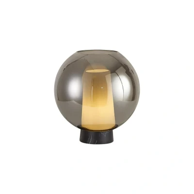 Nora Ball Table Lamp, 1 Light E27, Black/Black Marble/Chrome Glass
