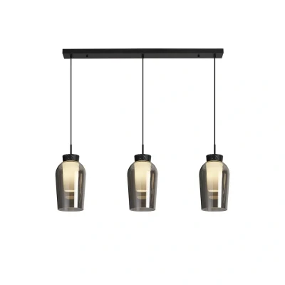 Nora Linear Pendant, 3 Light Adjustable E27, Black/Black Marble/Chrome Glass With Frosted Inner