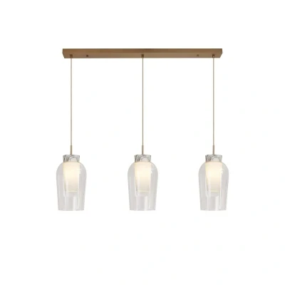 Nora Linear Pendant, 3 Light Adjustable E27, Gold/White/Clear Glass With Frosted Inner