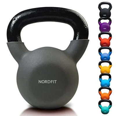 CAST IRON KETTLEBELL - Strength training kettlebells workout weight is wrapped in a scratch-free coating to prevent corrosion, protect hands & floor SUITABLE FOR EVERYONE - These kettlebell workout weights can be used by everyone, Ideal for increasing strength and stability while also incorporating cardio into home or gym exercises. Children under the age of 12 should only use with adult supervision. Suitable for teenagers and adults. MULTIPLE WEIGHT OPTIONS - Available in a range of weights ranging from 4kg to 20kg, so you can find the right weight for your workout. This includes: 4kg, 6kg, 8kg, 10kg , 12kg , 14kg, 16kg, 18kg and 20kg kettlebells. COMFORTABLE HANDLE AND BELL DESIGN - The neoprene rubber coating is highly shock absorbent and reduces the impact when the weights dropped to the floor. For high reps training, a smooth, wide, high-quality powder coated handle gives you a comfortable and solid grip. FLAT BASE - NORDFIT kettlebell weights have a flat bottom that lets them stand freely, making them ideal for storage and use in a range of exercises and regiment whilst also preventing the weights from rolling.