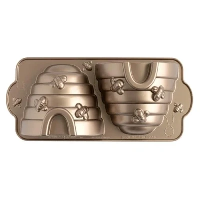 Nordic Ware Beehive Cake Pan, 3D Cast Aluminium Bundt Tin, Tin with Honey Bee Pattern, Premium Mould Made in The USA, Colour: Toffee