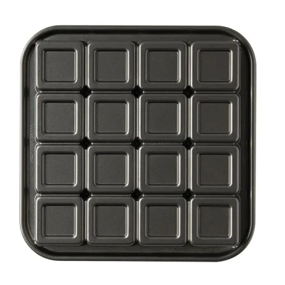 Make 16 tasty, crispy on the outside and fudgy on the inside brownies with the Nordic Ware Graphite Brownie Bites Pan. The cast aluminum construction provides fine detailing and superior baking performance. The heat reflective exterior provides uniform browning to further enhance the unique design.Featuring 16 cavities, this brownie bites pan has a 3 cup capacity and benefits from a premium non-stick coating. External dimensions - L 9.6 x W 9.6 x H 0.8.Hand wash in hot soapy water with mild detergent.The Nordic Ware Graphite Brownie Bites Pan is made in America and supplied with a Nordic Ware 10 year warranty.