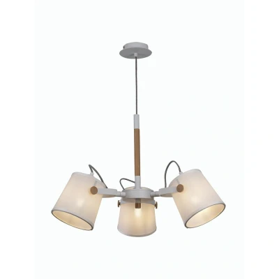 Nordica Ceiling Pendant 3 Light 3x23W E27, White, Beech with White Shades
