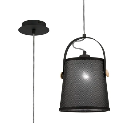 Nordica Ceiling Pendant with Black Shade 1 Light E27, Matt Black, Beech
