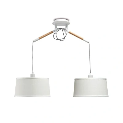 Nordica Ceiling Pendant with White Shade 2 Light E27, Matt White, Beech Ivory Shades