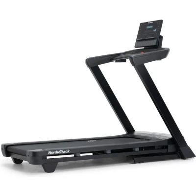 Smash your fitness goals with this NordicTrack's T Series 7 treadmill. Sync it to your smart device with Bluetooth and you can get tailored workout sessions straight from the iFit app. That means elite personal trainers are calling the shots. The SmartAdjust knows your fitness levels and intelligently adjusts the speed (up to 16 km/h) and incline (up to 10%). You can keep tabs on your workout stats on the 5” LCD display. And to get you started, you'll get the 30 days free iFIT TRAIN trial. Good to know - Pair a Bluetooth heart rate monitor (sold separately) with ActivePulse - Its SelectFlex cushioning tech reduces impact and strain on your knees while running - Set the pace with just a tap using its OneTouch speed control - There are two speakers, so you can follow routines or stream your favourite workout tracks- You can pop your phone or tablet on the built-in shelf and charge it using the USB-C port - When you're done, just stow it away with its folding design and transport wheels
