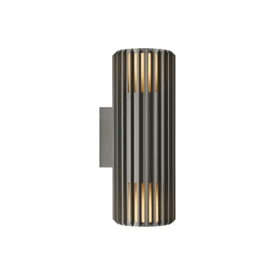 Lights.coAludra Double outdoor wall light with striking lighting effect The Aludra Double outdoor wall light is made of aluminium and features a polycarbonate diffuser at both the top and bottom. It was designed for Nordlux by the renowned Jacob Jensen Design company. Sculptural design and modern minimalism – these are the key concepts behind the Aludra series of lights. The wall light with an upward and downward facing lampshade is seawater resistant and can therefore be installed in coastal regions without any problems. It creates effective lighting in entrance areas, on terraces or balconies and looks particularly decorative when several are installed together.