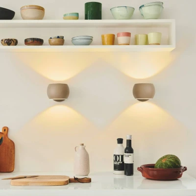 Lamp MastersBelir wall light brown is the perfect light for anyone who wants a practical and simple accent light to complement the main lighting in a room, whether in the kitchen, living room or bedroom. The light has a very simple design with a round, minimalist lampshade. The lampshade has a wide light outlet at both ends, so that when the light is switched on, it shines in a beautiful, two-part glow. This not only creates an elegant lighting effect on the wall behind it, but also a practical downlight that is ideal for use in work and reading areas, combined with diffuse backlighting. To top it all off, the lampshade can be rotated 360 degrees. The light direction can be adjusted to any conceivable angle, so you always have practical light exactly where you need it.