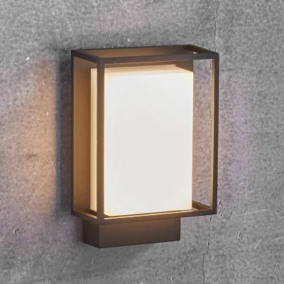 Rectangular LED outdoor wall light Nestor with frame The matt white plastic diffuser, which protects the warm white illuminating LEDs of the outside wall lamp Nestor, ensures a uniformly illuminating light. It is surrounded by an open frame, rectangular and formed from black aluminium like the back panel and an extension below. Nestor harmonizes visually, especially with modern outdoor spaces. - Several lights can be controlled together
