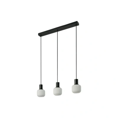 Lights.coMilford Mini pendant light with three hand-blown glass lampshades Milford Mini is a decorative series of lamps for a wide variety of rooms, crafted in the Japandi style in a mix of hand-blown opal glass with a beautiful ribbed surface and black metal. The 3-bulb pendant light with rectangular canopy, from which the three lampshades hang side by side, is ideal for illuminating tables and counters.
