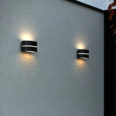 Nordlux Sibelis outdoor wall light, up/down, black, plastic, E27