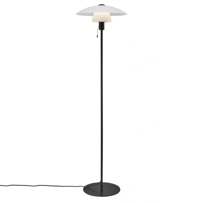 Verona Floor Lamp Opal is a successful combination of black and white, glass and metal, in a beautiful, timeless design that, through its contrasting colours and materials, appears as a well-balanced and well-thought-out lamp model that will always appear tasteful and stylish. The lampshade has a classic multi-layered look. Each shade panel is made of white opal glass, which lights up in a beautiful matt glow when the lamp is switched on. At the same time, the lampshades direct the light downwards in a beautiful downlight. The lamp is part of the Verona series from Nordlux. The series includes a pendant lamp, floor lamp and table lamp, all in the same exclusive design that can easily be combined for a coherent and stylish lighting concept. The table and floor lamp is equipped with an elegant cord at the frame that can be used to operate the lamp.