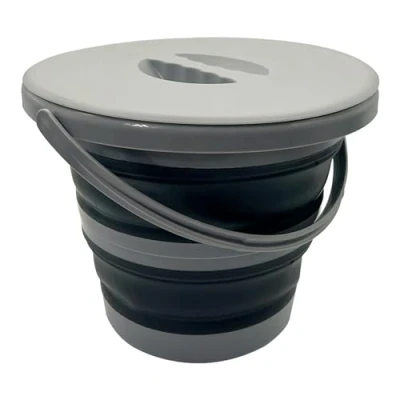 Amazon MarketplaceQuick fold collapsible bucket with lid 5 Litre capacity Carry handle Saves 2/3rds space when not in use Dims H200 x Ø250 top/Ø153mm base - open (including carry handle, hanging hook & lid) Dims H280 x W262 x D45mm folded