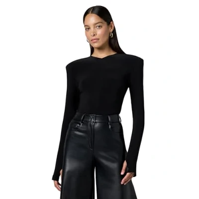 Norma Kamali Long Sleeve Shoulder PAD V NECK sleeved top, Women's, Size: Small, Black