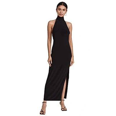 Norma Kamali Women's Halter Turtle Side Slit Gown Cocktail Dress, Black, Medium