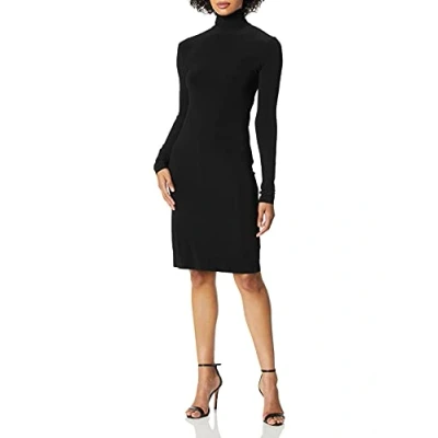 Norma Kamali Women's Slim FIT Long Sleeve Turtle Dress to Knee Casual Night, Black, Large