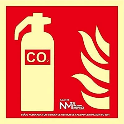 High quality CO2 fire extinguisher signal and easy installation. High resistance to weather conditions Made of PVC of 1 mm thick, luminescent class A (RICPI RD 513/2017 standard) suitable for buildings with no natural light or public concentration (transport stations, shopping centers, car parks, underground, stadiums, facilities and establishments with hazardous substances, etc) Approved Extinction Sign Containing CO2 Fire Extinguisher Pictogram (UNE 23033/1:2019) Includes month/year of manufacture and lot number with their respective luminescence test Normaluz: leading company in design, manufacture and marketing of signals, luminescent signals and silkscreen adhesives