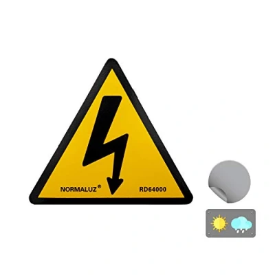 Electrical Hazard Sign with Lightning Pictogram, Made of Adhesive Vinyl Pack of 10 units of size 10.5 cm ideal for placing in access to devices and places with electrical hazard Easy installation. Strong and durable adhesive Normaluz signals are manufactured with UNE-EN ISO 9001 certified quality management system Normaluz, Leading company in design, manufacture and commercialization of signals, luminescent signals and screen printed adhesives