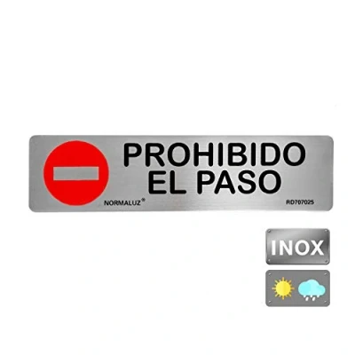 Normaluz RD707025 Rectangular Adhesive Sign, Forbidden, Stainless Steel, Adhesive, 0.8 mm, 5 x 20 cm, Grey