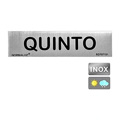 Five-to-sign with modern and elegant design Made of stainless steel, self-adhesive, 0.8 mm. Grey High-quality material and resistant to external weather influences Easy to apply thanks to extra strong adhesive Normaluz signs are manufactured using UNE-EN ISO 9001 certified quality management system Normaluz, company Lider in the design, manufacture and marketing of signs, luminous signs and stickers in screen printing
