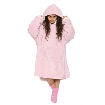 NOROZE Boys Girls Kids Hoodie Blanket Xmas Ultra Soft Sherpa Sweatshirt Warm Comfy Cosy Oversized Wearable Throw Hooded Top One Size Fit All (7 13 Years, Pink)
