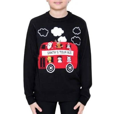 🎄 【DESIGN & LOOK】 NOROZE presents Kids Christmas Jumpers, a festive delight for boys and girls. These sweaters boast new designs, including Christmas World Cup Football Soccer Ball Santa Hat, Red Nose Rudolph, Santa Tour Bus & Muffler Pom Bear Snowflake. With their joyful and timeless designs, these jumpers capture the essence of Christmas, making them perfect for kids who want to celebrate the holidays with style and whimsy. 🎄 【MATERIAL & FEEL】 These jumpers are made from 100% Acrylic, soft and comfortable knit fabric, ensuring warmth and cosiness during winter. The material is gentle on children's skin, offering comfort and durability to withstand the holiday season's adventures. 🎄 【VERSATILITY】 NOROZE's Kids Christmas Jumpers are highly versatile and suitable for various holiday occasions. Whether your child is attending a Christmas party, enjoying family gatherings, or simply feeling the holiday spirit at home, these sweaters are a stylish and cheerful addition to their wardrobe. 🎄 【KEY FEATURES】 These jumpers feature a classic pullover design, meaning children can quickly put them on and take them off without fuss, long sleeves provide additional warmth, making these jumpers suitable for winter; the ripped neckline, cuffs, and hem add a touch of trendy style to these Christmas jumpers. 🎄 【SIZE AND COLOUR】 NOROZE offers 3-4, 5-6, 7-8, 9-10, 11-12-, and 13-years sizes to accommodate children of different ages and sizes. Choose from classic Christmas colours like Black, Red, and Navy, allowing your child to express their unique style while spreading holiday cheer.