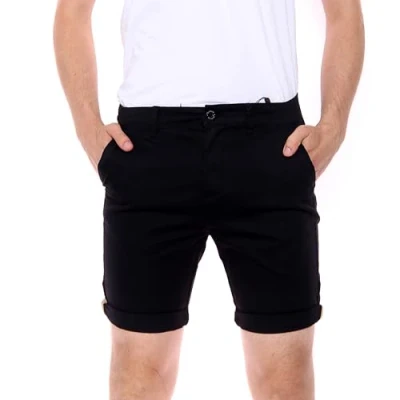 NOROZE Chino Men’s Shorts Plain Casual Turnup Cotton for Summer Slim Fit Stretch Combat Short Half Pants Men UK Size (30 40) Black