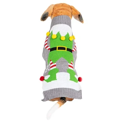NOROZE Dog Christmas Jumper Warm Winter Clothes Puppy Snowman Elf Soft Coat Xmas Dogs Sweater Outfit (S, Grey)