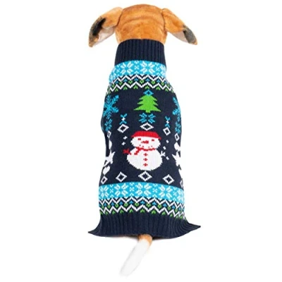 NOROZE Dog Christmas Jumper Warm Winter Clothes Puppy Snowman Elf Soft Coat Xmas Dogs Sweater Outfit (XL, Navy)