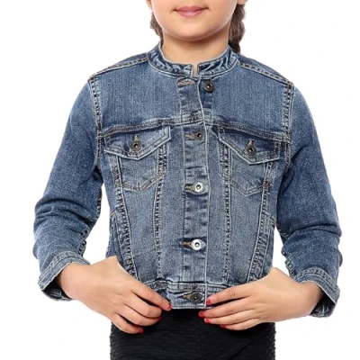 NOROZE Girl's Western Style Jacket Collarless Denim Jacket, Light Blue Washed Jeans Kids Classic Trucker Biker Casual (13 Years, Blue)