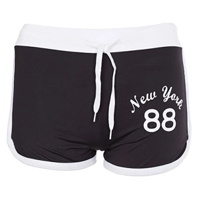 NOROZE Girls New York Print Drawstring Hot Pants Runner Shorts (13 Years, Black/White)