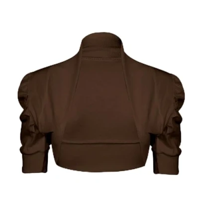 NOROZE Kid's Plain Ruched Sleeves Bolero Shrug for Girls Cropped Cardigans (9 10 Years, Brown)