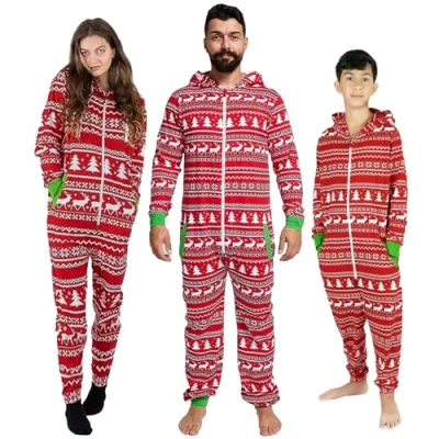 NOROZE Matching Christmas pjs for Family Onesie Sleepsuit Loungewear Jumpsuit Women Men Unisex Adult Halloween Sleepwear (XXL, Dad Reindeer Red)