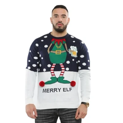 NOROZE Men's Christmas Jumpers Xmas Santa to The Pub Reindeer Novelty Unisex Long Sleeves Crew Neck Winter Pullover Top (L, Merry Elf Navy)