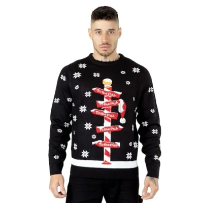 NOROZE Men's Christmas Jumpers Xmas Santa to The Pub Reindeer Novelty Unisex Long Sleeves Crew Neck Winter Pullover Top (XL, Poll Black)