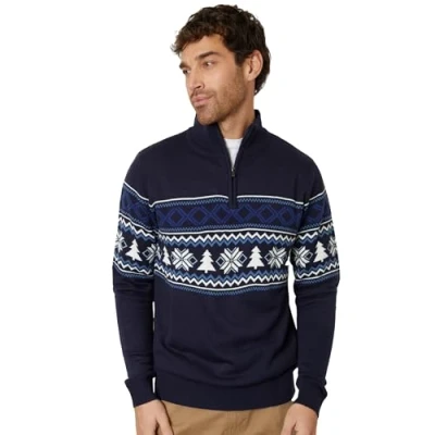 Design - The NOROZE Men's Christmas Novelty Knitted Sweater boasts a charming holiday design that's ideal for the festive season. This joyful sweater is available in three unique patterns Horns Fair Isle, Moose Fair Isle, and Snowflake Fair Isle, each radiating seasonal cheer and timeless style. Material Quality - This sweater is made from 100% high-quality acrylic, offering a fabric that is warm, soft, and durable perfect for keeping cosy during the chilly holiday season. Multi-Purpose - This sweater is so cute because it is unisex and anyone can wear it and show their holiday spirit. It's perfect for family gatherings office parties or any festive occasion. Wear it with jeans and it's casual or dress it up with some slacks and it's more dressed up. Features - The NOROZE Christmas Jumpers are crafted to embody holiday cheer with a stylish design. Featuring a quarter-zip turtleneck and long sleeves, these jumpers combine comfort and functionality. The ribbed cuffs and hem provide a snug fit while adding an extra touch of warmth and elegance. Size and Colour - The NOROZE Men's Christmas Sweater comes in Small, Medium, Large, XL and 2XL so there is something for everyone. Choose from traditional Christmas colours like blue or navy to match your style or event theme.