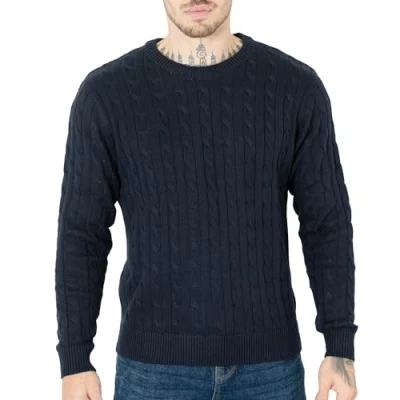 NOROZE Men's Jumpers Cable Knit Lightweight Jumper Crew Neck Warm Long Sleeve Winter Tops Knitted Sweaters Knitwear Casual Slim Fit Pullover Sweatshirts for Men Navy