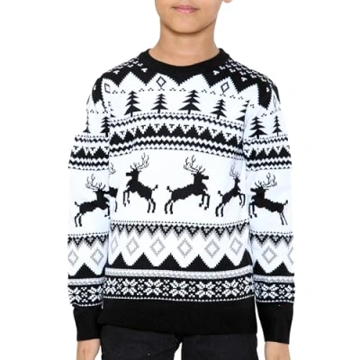 NOROZE Men Women Boys Girls Family Christmas Jumper Ugly Sweaters Long Sleeve Fairisle Reindeer Snowflake Xmas Tree Knitted Crewneck Sweatshirt (13 Years, Jumping Black)