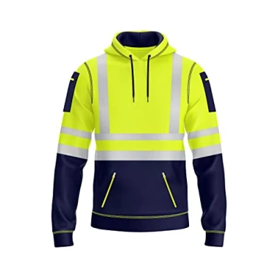 NOROZE Mens Hi Viz Pullover Hoodie Grey Reflective Tape High Visibility Safety Coat With 4 Zip Utility Phone & Gadget Pockets Sweatshirt Top Jacket (S, Style 1: Neon Green/Navy)