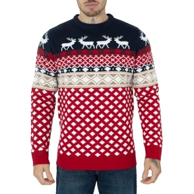 【Design & Look】 NOROZE presents the Men's Unisex 70's Jumpers Sweater, a delightful retro Christmas knitwear top that captures the essence of holiday nostalgia. With three charming design options - Reindeer, Santa Sleigh, and Gingerbread Man - this sweater adds a festive touch to your wardrobe. These intricate designs are perfect for channelling the spirit of the 70s and celebrating the joy of Christmas in a uniquely stylish way. 【Material & Feel】 These jumpers are made from 100% acrylic, high-quality, soft, and warm knit fabric that ensures comfort and durability. The material offers the cosiness to stay warm throughout the holiday season, making these sweaters a practical and festive choice. 【Versatility】 NOROZE's 70's Jumpers Sweater is versatile as a holiday wardrobe essential and a conversation starter at festive gatherings. These sweaters effortlessly transition from casual family dinners to festive office parties, ensuring you are comfortable and stylish. 【Key Features】 These sweaters have a retro pullover style, making them easy to put on and take off. They are characterized by intricate and detailed designs that pay homage to classic holiday motifs, adding charm to your outfit. 【Size and Colour】 NOROZE offers Small, Medium, Large, XLarge, and XXLarge sizes to accommodate various body types, ensuring everyone can enjoy the retro Christmas charm. Choose from multiple colours, including Red and navy, Black, Red and white, and White, to match your preferred holiday style and immerse yourself in the Christmas spirit.
