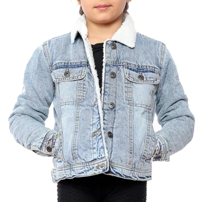 NOROZE Sherpa Lined Denim Jacket Jeans Coat Borg Kids Girls Trucker Top (9 10 Years, Light Blue)