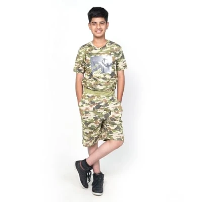 NOROZE Unisex Graphic T Shirt Military Style Camo Boys Girls Combat 2 Piece Set Top Shorts Shark Print Cotton Outfit (9 10 Years)