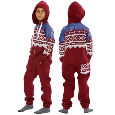 【Spooktacular Halloween Design】 NOROZE Aztec Onesie, Skeleton Halloween Fleece Hooded Onesie Jumpsuit is a must-have for Halloween enthusiasts. Features an eye-catching Aztec and skeleton design that's perfect for Halloween. Full-body coverage with an attached hood to complete the bone-chilling look. Detailed skeleton and Aztec print on both front and back for a realistic and sinister appearance. People embrace the spooky and supernatural elements of folklore and mythology. 【Cozy Fleece Material】 Crafted from premium fleece, 52% Cotton, 48% Polyester. This onesie jumpsuit offers unrivalled warmth and softness. Stay snug and cosy during those chilly Halloween nights while enjoying a stylish and spooky look. 【Versatile Halloween Wear】 Whether you're trick-or-treating, attending a costume party, or simply lounging at home, this hooded onesie is your go-to choice. Its versatile design and comfortable fit make it perfect for both indoor and outdoor Halloween festivities. 【Features】 The attached hood adds an extra layer of Halloween fun. NOROZE knows that Halloween is all about convenience too. This long-sleeved jumpsuit features a front zipper for easy dressing and undressing, as well as 2 front and back pockets to keep your essentials handy. The hood is lined with a contrasted soft textile, and the cuffs, hem and pocket trims are matching and ribbed for both aesthetics and comfort. The double Zip Puller is branded and chunky. 【Color and Sizes】 NOROZE Aztec Onesie, Skeleton Fleece Hooded Onesie Jumpsuit is available in Black Aztec, Charcoal, Navy, Red, Skeleton Black, Grey, Royal Blue, Skeleton Silver Grey, and Wine colour. All sizes ranging from 5 years to 13 years are available.