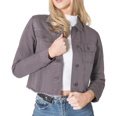 NOROZE Women's Denim Jacket Cropped Women Ripped Self Fabric Distressed Hem Casual Jean Coat (10, Charcoal)