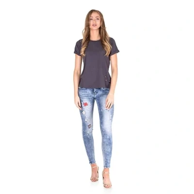 NOROZE Women's Distressed Ripped Holes Nibble Plain Cut Out Rounded Neck Casual T Shirt (Dark Grey, 18)